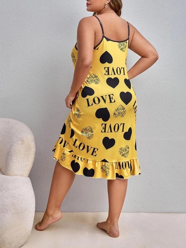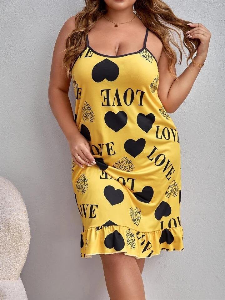 Buy Abercrombie Wide Strap Mini Dress Cami Nighty - Brighten up your nightwear collection with this stylish mustard yellow nightdress, featuring bold black heart motifs and “LOVE” typography print. Designed for both comfort and charm, this sleeveless nighty comes with thin spaghetti straps and a relaxed, flowy silhouette that offers ease of movement and a flattering fit.