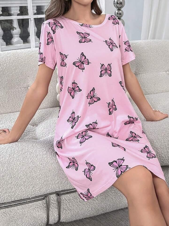 Buy Bridal Short Nighty Online in India. Stay relaxed and stylish with this adorable baby pink butterfly print night dress. Designed with a soothing pastel shade and elegant butterfly patterns, this short nighty offers a fresh and youthful look. Made from soft, breathable fabric, it feels gentle on the skin and ensures all-night comfort. The round neckline and short sleeves provide a relaxed fit, making it perfect for nightwear, lounging, and daily home use.