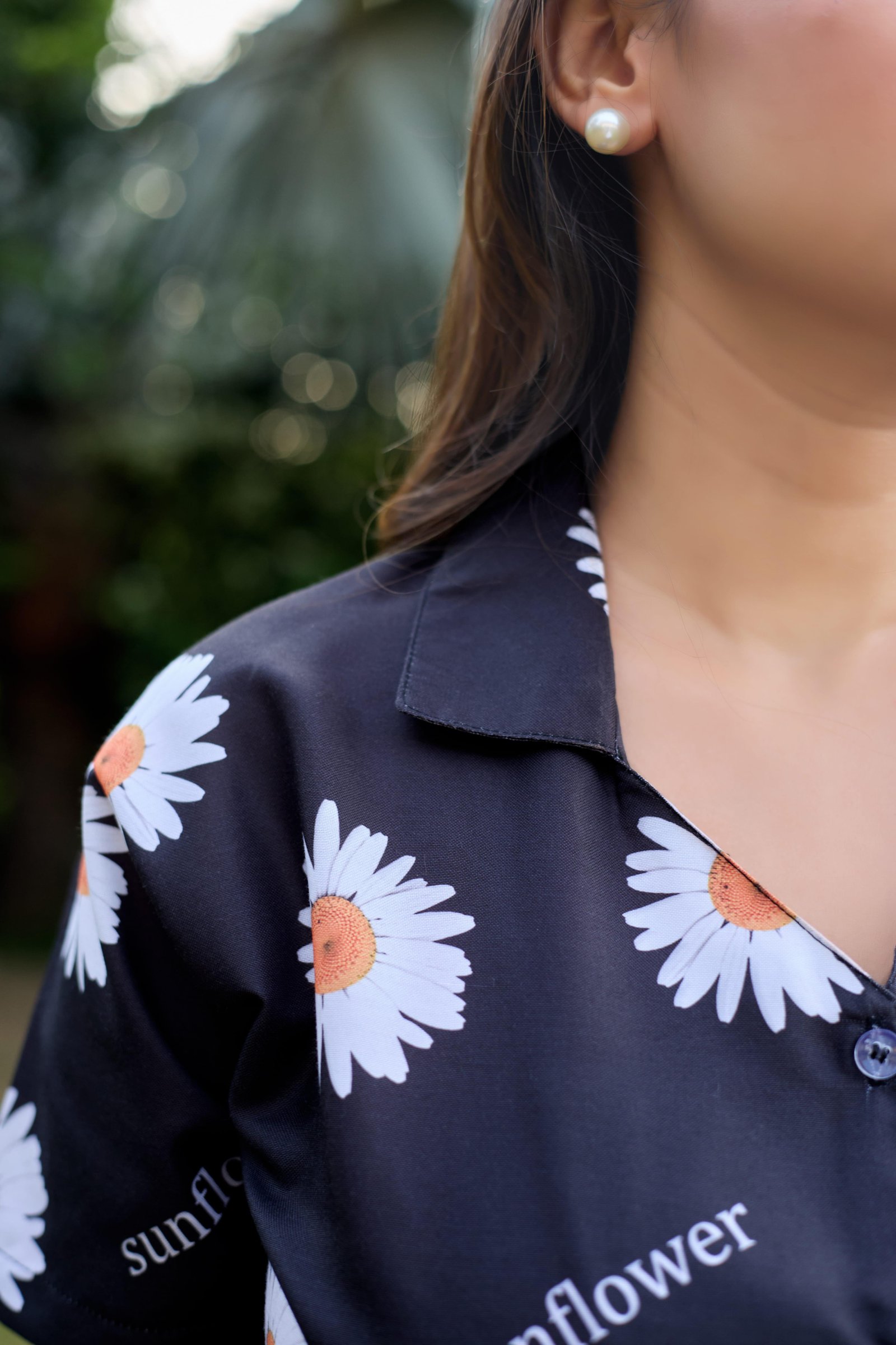 Lazy Club Black Sunflower Print Cotton Pj Short Set