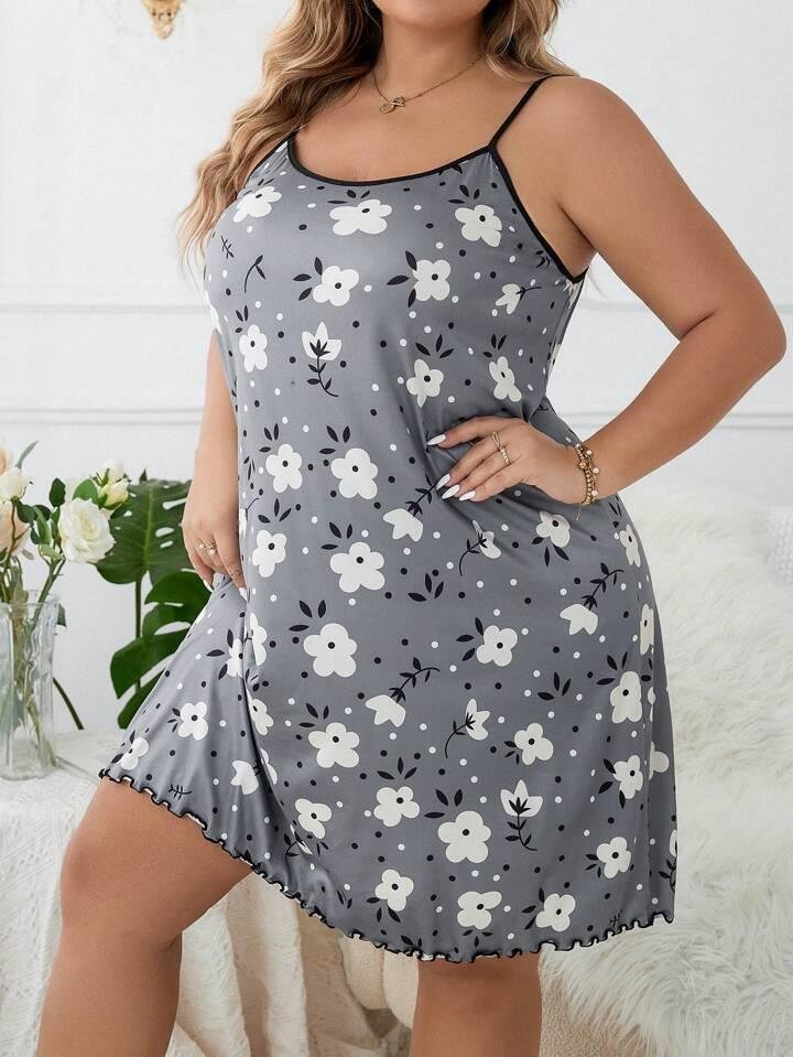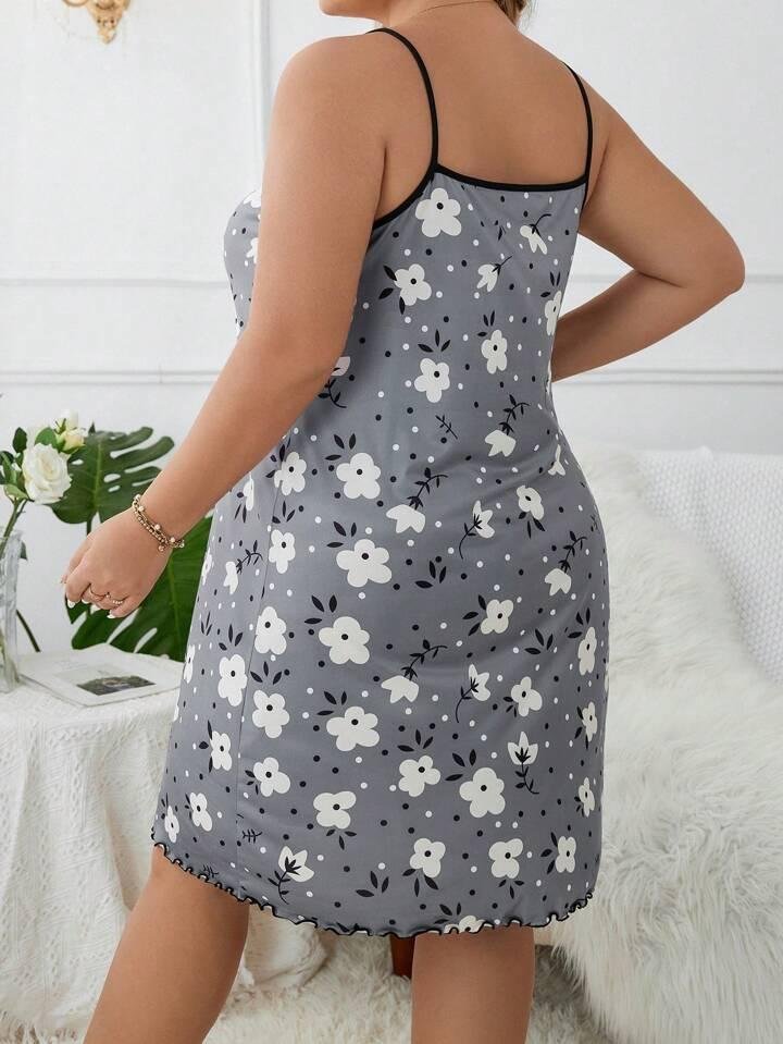 Grey Floral Print Spaghetti Shoulder Strap Mini Dress